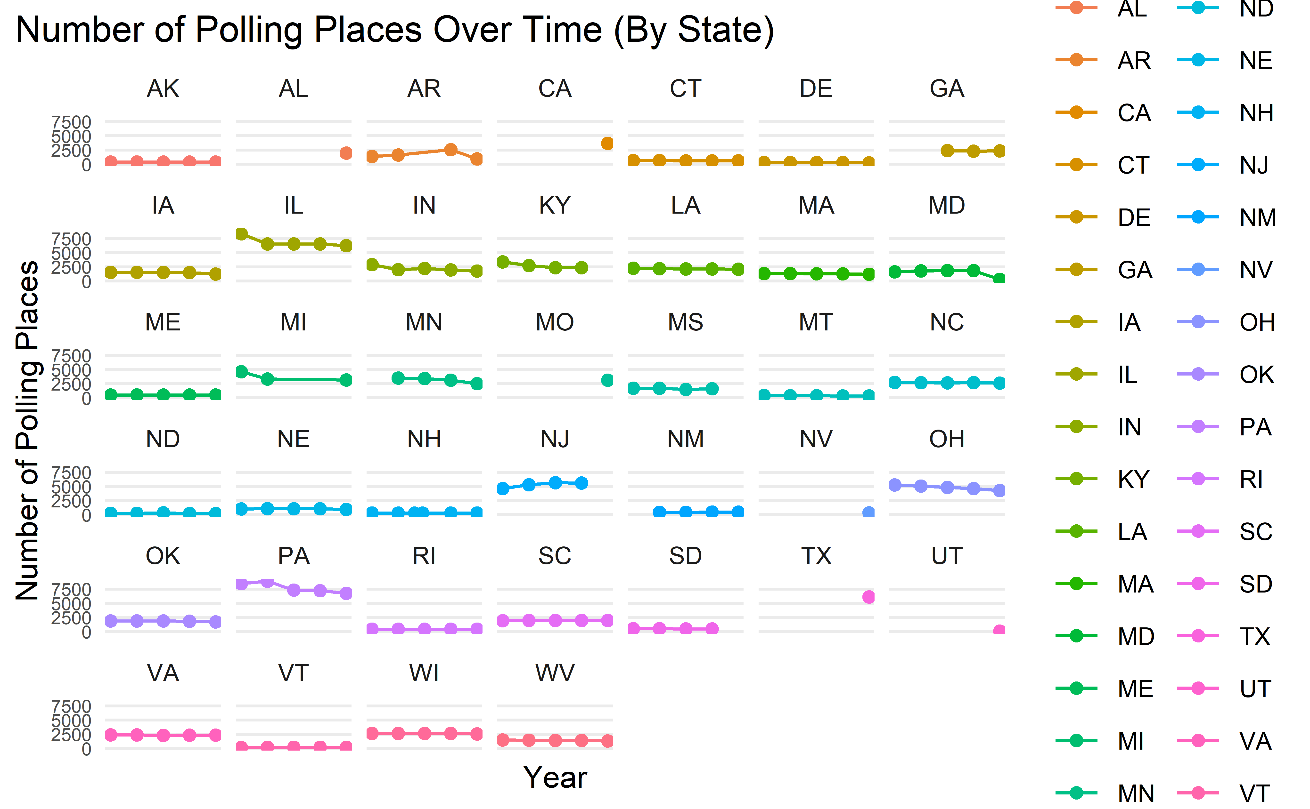The dataset was featured in their September 2020 article titled “National data release sheds light on past polling place changes”.